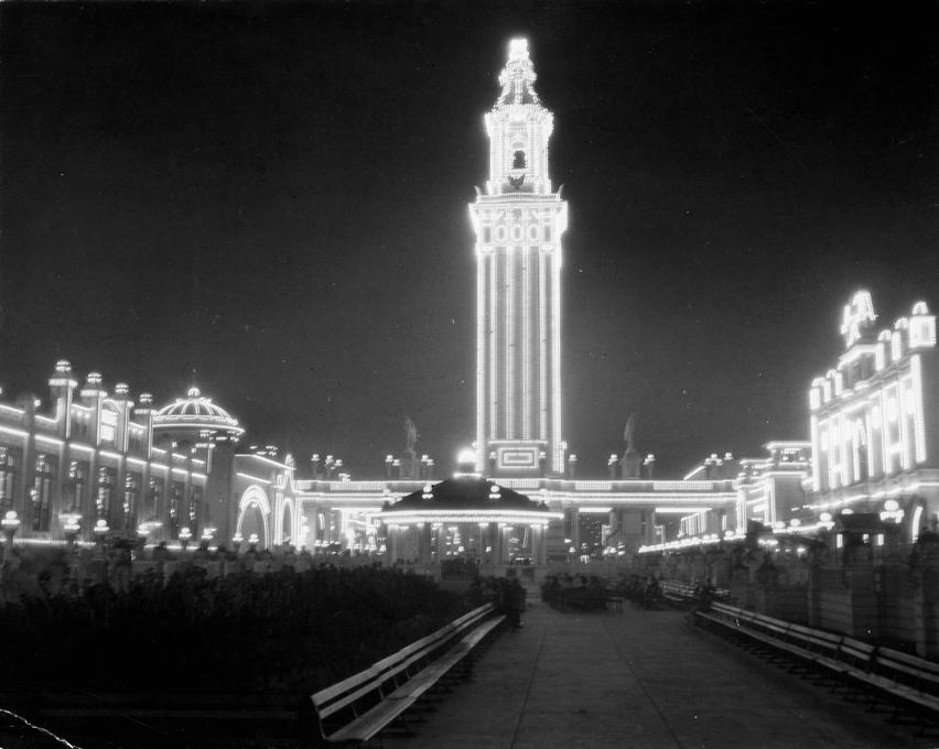 In 1878, the era of electricity began in Chicago with the experimental demonstration of arc lamps—bright, 2,000-candlepower devices. They created a spark or arc of current across two carbon rods. While solving the problem of lighting large public spaces, this technology proved unsuitable for homes and stores. Two years later, Thomas Edison was the first to prove the incandescent lamp commercially viable. This invention was a revolutionary breakthrough, as it provided flameless light inside a fire-safe container. Equally important, the parallel improvement of electric motors led to railways and rapid transit cars becoming the largest consumers of electric power.