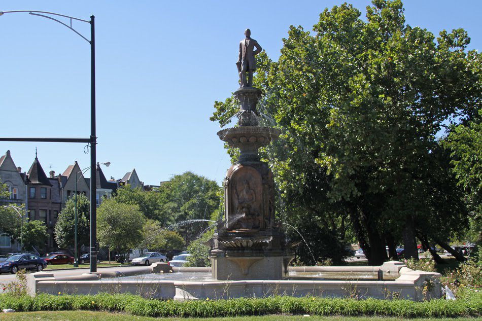 Drexel Fountain – это старейшая общественная скульптура в Чикаго, посвященная памяти Фрэнсиса Дрекселя, австрийского банкира и спекулянта недвижимостью, который пожертвовал городу Чикаго на строительство нынешней Дрексель-авеню. Окруженный пышной листвой фонтан, имеет изображение Нептуна, сидящего верхом на дельфине, а также другие символы водоемов. Он особенно красив в ночное время, когда на фоне чикагского горизонта начинается световое и водное шоу.